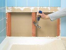 - с бетонной и кирпичной поверхности снять плитку представляется возможным, но если она у вас приклеена на гипсокартон, то готовьтесь к масштабным разрушениям. В лучшем случае, кафель будет сплошь разломанным, в худшем – придется менять перегородку из гипсокартона.