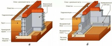 Это конструкция — это основание, выполненное из железобетонных, бутовых или силикатных блоков, уложенных на подготовленную фундаментную подушку и скрепленных между собой цементным раствором. Отдельные секции могут быть как пустотелыми, так и полнотелыми; второй тип встречается чаще всего.